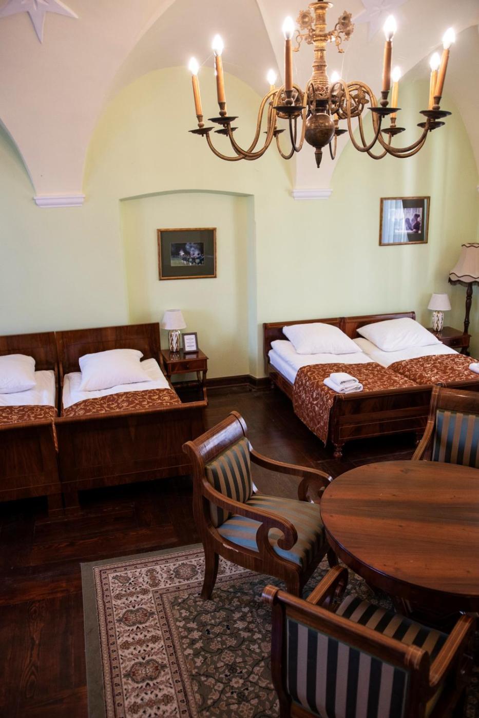Pokój rodzinny w hotelu Zamkowym (budynek obok zamku). Ten klimatyzowany pokój rodzinny z prywatną łazienką wyposażono w telewizor z płaskim ekranem i dostępem do kanałów satelitarnych. W tej opcji zakwaterowania dostępne są 3 łóżka. Rodzinny - 3 osobowy. Powierzchnia pokoju ok.: 25 mkw. ;