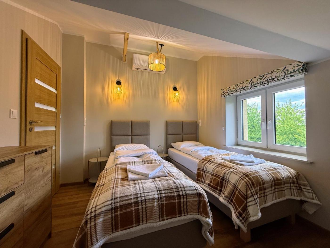 Dom wakacyjny. This holiday homes special feature is the fireplace. Featuring a private entrance, this air-conditioned holiday home comprises 2 living rooms, 6 separate bedrooms and 4 bathrooms with a walk-in shower and a hairdryer. Guests will find a stovetop, a refrigerator, a dishwasher and kitchenware in the well-fitted kitchen. The holiday home also provides guests with a barbecue. The spacious holiday home provides a washing machine, a tea and coffee maker, a seating area as well as a terrace with garden views. The unit offers 17 beds. Dom wakacyjny - 21 osobowy. Powierzchnia pokoju ok.: 250 mkw.