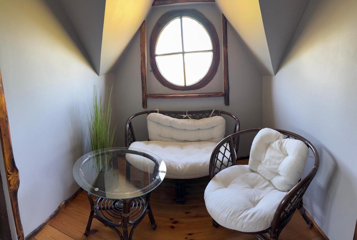 Dom z 2 sypialniami. The sauna is the standout feature of this holiday home. Guests will find a stovetop, a refrigerator, kitchenware and a toaster in the fully equipped kitchen. The holiday home also includes a barbecue. Boasting a terrace with garden views, this holiday home also features a private entrance and a flat-screen TV. The unit has 5 beds. Dom wakacyjny - 8 osobowy. Powierzchnia pokoju ok.: 70 mkw.
