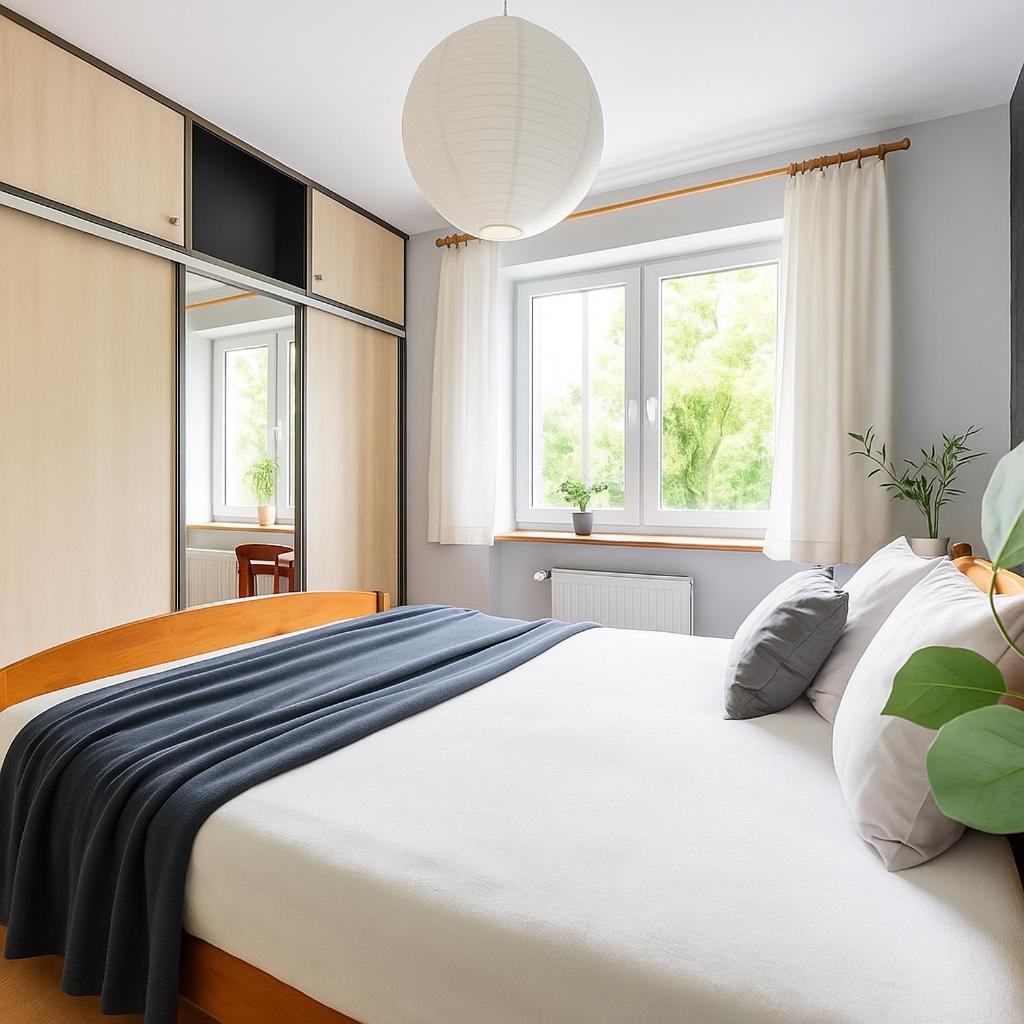 Apartament z 1 sypialnią. This apartment features 1 bedroom, a kitchen and 1 bathroom with a shower and a hairdryer. Guests can make meals in the kitchen that has a stovetop, a refrigerator, kitchenware and a tea and coffee maker. This apartment has a wardrobe, heating and a flat-screen TV. The unit has 1 bed. Apartament - 2 osobowy. Powierzchnia pokoju ok.: 40 mkw. ;