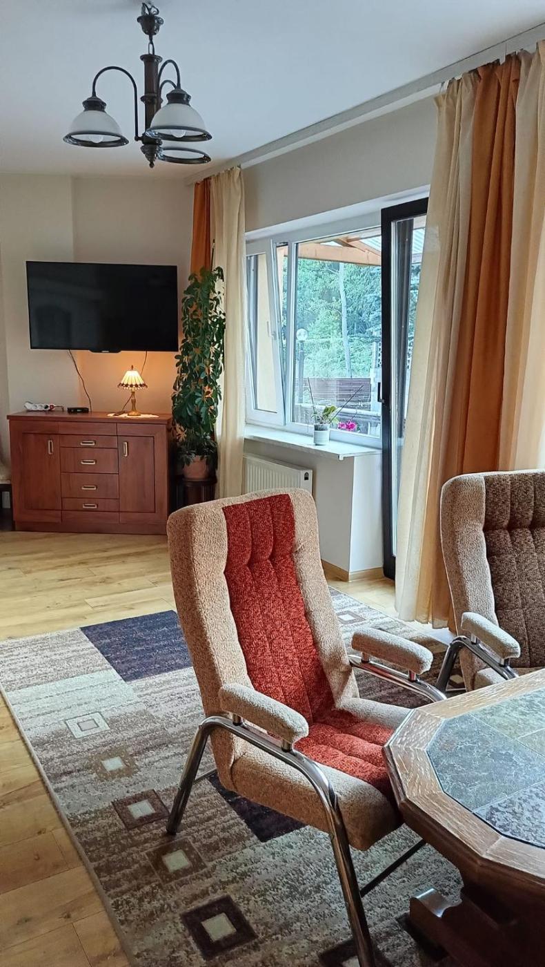 Apartament rodzinny z 2 sypialniami. This apartment comprises 1 living room, 2 separate bedrooms and 1 bathroom with a shower and a hairdryer. In the fully equipped kitchen, guests will find a stovetop, a refrigerator, kitchenware and a microwave. Featuring a terrace with garden views, this apartment also provides a seating area and a flat-screen TV. The unit offers 4 beds. Apartament - 6 osobowy. Powierzchnia pokoju ok.: 53 mkw. ;