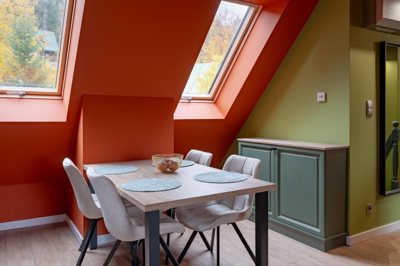 Apartament Premium z 1 sypialnią. Boasting a private entrance, this air-conditioned apartment features 1 living room, 1 separate bedroom and 1 bathroom with a bath and a hairdryer. Meals can be prepared in the kitchen, which has a stovetop, a refrigerator, a dishwasher and kitchenware. Featuring a terrace with mountain views, this apartment also features a washing machine and a flat-screen TV. The unit has 2 beds. Apartament - 4 osobowy. Powierzchnia pokoju ok.: 40 mkw.