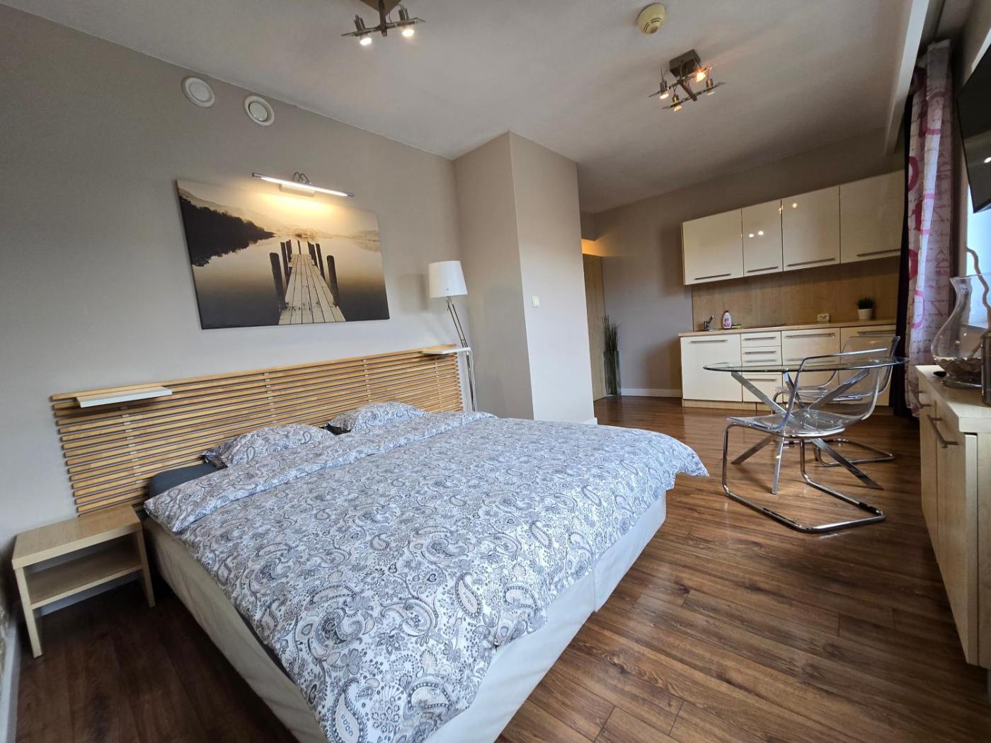 Studio typu Standard. The studio provides air conditioning, a washing machine, as well as a private bathroom featuring a shower and a hairdryer. In the kitchenette, guests will find a stovetop, a refrigerator, kitchenware and an electric kettle. The studio offers a private entrance, a dining area, heating and a flat-screen TV. The unit offers 1 bed. Studio - 2 osobowy. Powierzchnia pokoju ok.: 26 mkw. ;